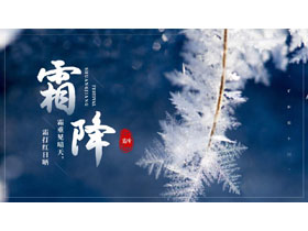这是一套蓝色挂霜的树枝背景的二十四节气之霜降节气介绍PPT模板,共23页;