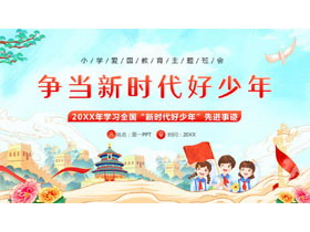 精美国潮风“争当新时代好少年”小学爱国教育主题班会PPT模板下载