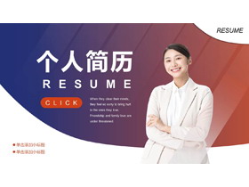 红蓝渐变白领丽人背景的个人简历PPT模板下载