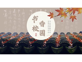 古典屋檐枫叶背景书香校园读书活动策划PPT模板下载