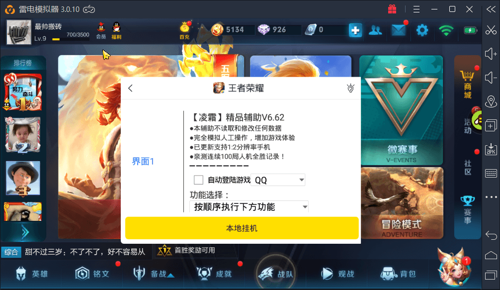 5.选择使用的脚本,设置内容,点击本地挂机,完成模拟器挂机操作。