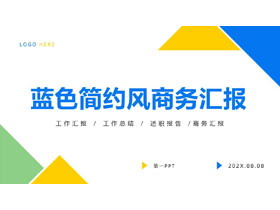 蓝色简约风几何图形背景的商务汇报PPT模板下载