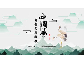 绿色水墨群山仙鹤背景的中国风商务汇报PPT模板