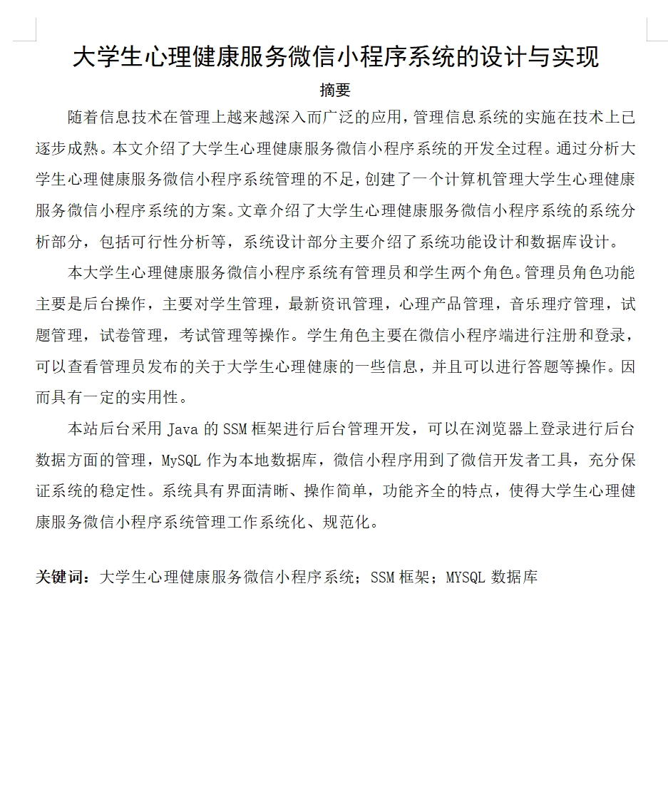 基于微信小程序大学生心理健康系统----学生可以在线进行音乐理疗