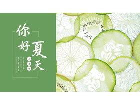 绿色柠檬片背景的小清新“你好夏天”PPT模板