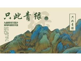 绿色古典水彩群山背景的“只此青绿”中国风PPT模板