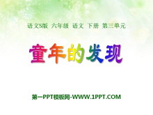 关键词:童年的发现教学课件,语文S版六年级下册语文课件,六年级语文幻灯片课件下载,童年的发现PPT课件下载,.ppt格式