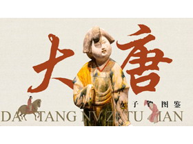 精美唐陶仕女俑背景的大唐女子图鉴宣传介绍PPT模板