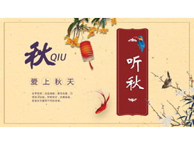 古典花鸟背景的中国风爱上秋天主题PPT模板