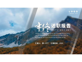这是一套雄伟山峰背景的毛玻璃风格年终述职报告PPT模板,共24页;