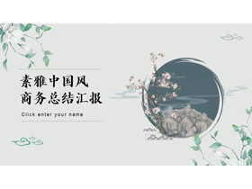 素雅水彩花卉背景的中国风商务总结汇报PPT模板