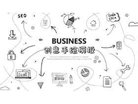 整套PPT模板以黑白配色为主色调,设计风格创意手绘;PPT模板封面使用了手绘思维导图背景图片;内容页包含了多张办公场景插图、职场人物插图等,突出了商务主题。