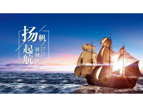 这是一套大气海上帆船背景“扬帆起航拼搏梦想”励志风PPT模板,共20页;