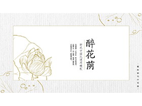 线描荷花背景的“醉花荫”中式商务汇报PPT模板