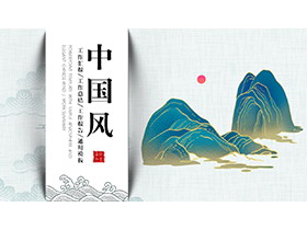 精美鎏金山川背景的中国风总结汇报PPT模板