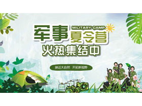 绿色清新卡通风格的军事夏令营火热集结中PPT模板