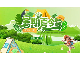 这是一套绿色清新卡通风格的暑期夏令营活动策划PPT模板,共20页;