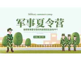 这是一套绿色卡通小朋友背景的暑假军事夏令营机构暑假招生宣传PPT模板,共24页;