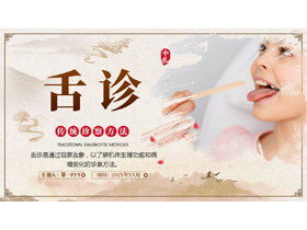 古典中国风背景的舌诊传统中医诊察方法PPT模板