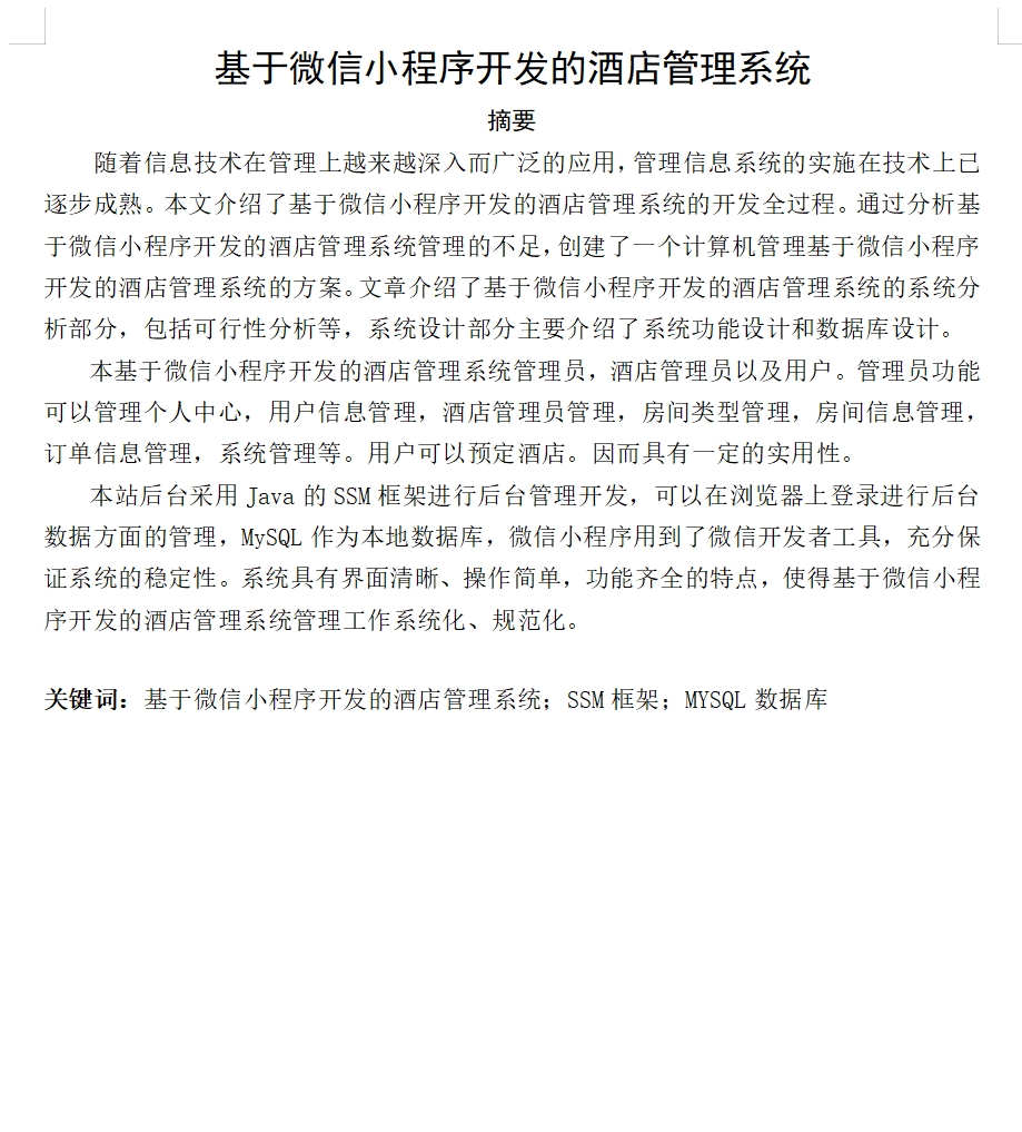 基于微信小程序酒店管理系统