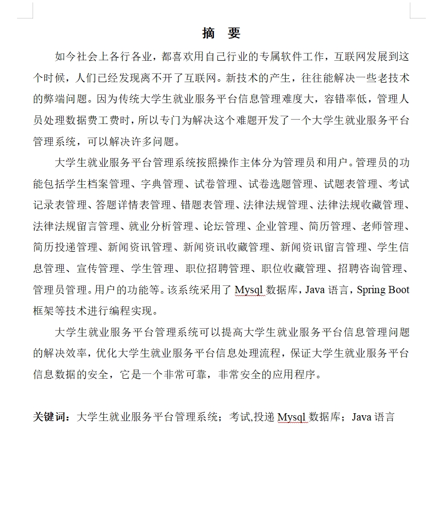 基于java(springboot)框架实现的大学生就业服务平台----系统平台主页