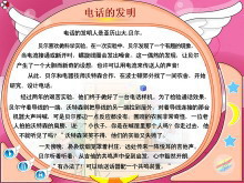 关键词:电话的发明动画课件,北师大版三年级上册语文Flash动画课件下载,三年级语文Flash动画课件下载,电话的发明Flash动画课件下载,.swf格式;