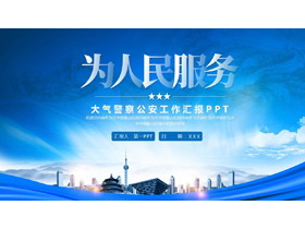 蓝色党政风“为人民服务”大气警察公安工作汇报PPT模板