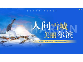 蓝色“人间雪城美丽尔滨”哈尔滨城市介绍旅游宣传PPT模板