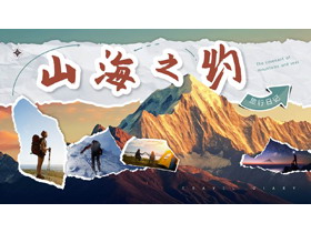 高大山峰背景的撕纸风“山海之约”旅行日记PPT模板