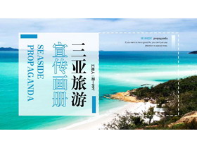 蓝色大海沙滩背景的三亚旅游宣传画册PPT模板