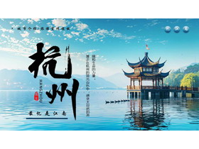 蓝色古建筑背景的杭州城市介绍旅游宣传PPT模板