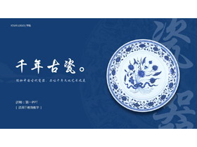 蓝色古典瓷器背景的“千年古瓷”陶瓷艺术PPT模板