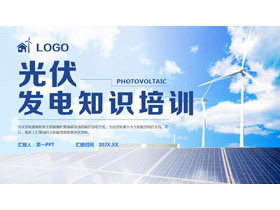 这是一套蓝色风车背景的光伏发电知识培训PPT模板,共23页;
