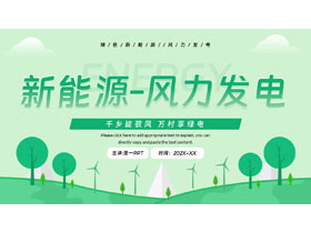 绿色卡通背景的新能源风力发电宣传介绍PPT模板