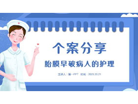 蓝色卡通护士背景的胎膜早破病人的护理知识讲座PPT模板