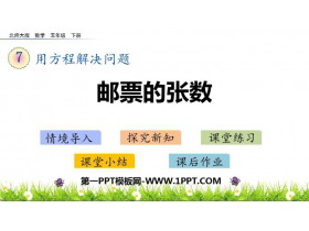 北师大版五年级数学下册《邮票的张数》用方程解决问题PPT教学课件,共14页。