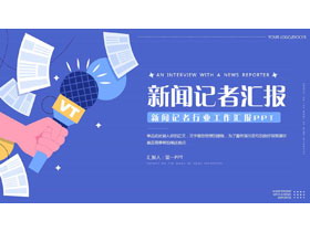 蓝色矢量话筒剪切画背景的新闻记者汇报PPT模板