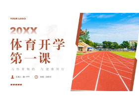 这是一套褐色操场跑道背景的体育开学第一课PPT模板,共14页;