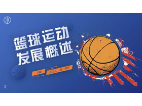 这是一套蓝色卡通篮球背景的篮球运动发展概述教学说课PPT模板,共25页;