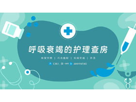 青色矢量风格的呼吸衰竭的护理查房PPT模板