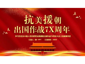 红色党政风抗美援朝出国作战7X周年PPT模板下载