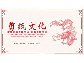 这是一套红色古风中国龙背景的剪纸文化介绍PPT模板,共23页;