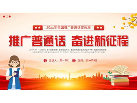 这是一套红色党建风“推广普通话奋进新征程”全国推广普通话宣传周PPT模板,共26页;