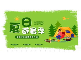 绿色野外露营背景的“夏日避暑季”夏季户外露营宣传介绍PPT模板