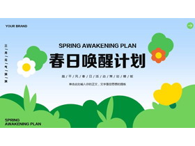 绿色卡通风格的“春日唤醒计划”春游活动策划PPT模板