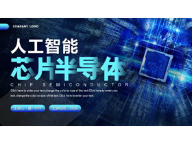 蓝色芯片电路板背景的科技风人工智能芯片半导体介绍PPT模板