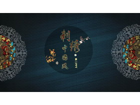 蓝色古典花纹背景中国风刺绣主题PPT模板下载