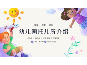 卡通小朋友背景幼儿园托儿所介绍PPT模板