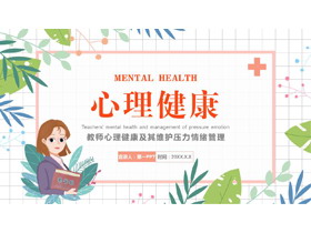 卡通女教师背景教师心理健康及其维护压力情绪管理PPT模板