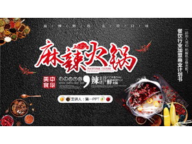 黑色火锅调料背景“麻辣火锅”中国美食主题PPT模板